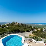 この浴室7室の別荘のテラスからは山の海辺の景色を望めます。